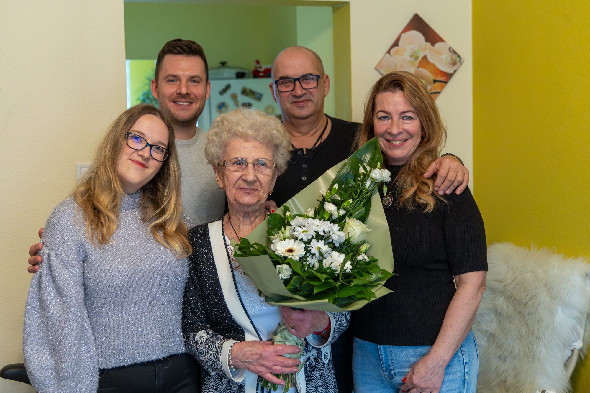Irén néni 1936-ban született Vácon, férjével 56 éven át élt boldog házasságban. Két lánya született, ma pedig már négy fiú és egy lányunoka, valamint négy leány dédunoka veszi körül.