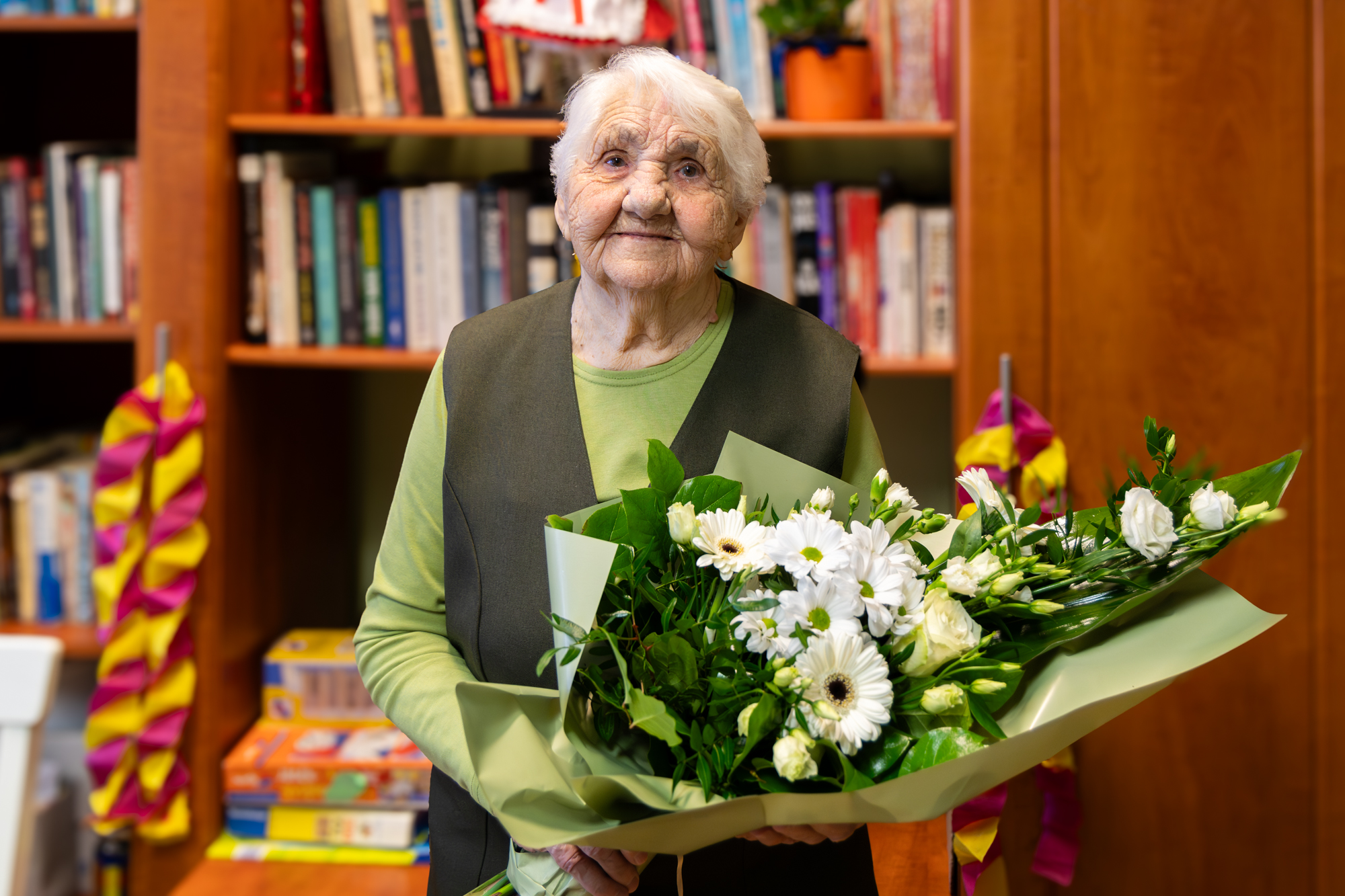 95. születésnapja alkalmából köszöntötték Erzsébet nénit a Rádi úti idősotthonban