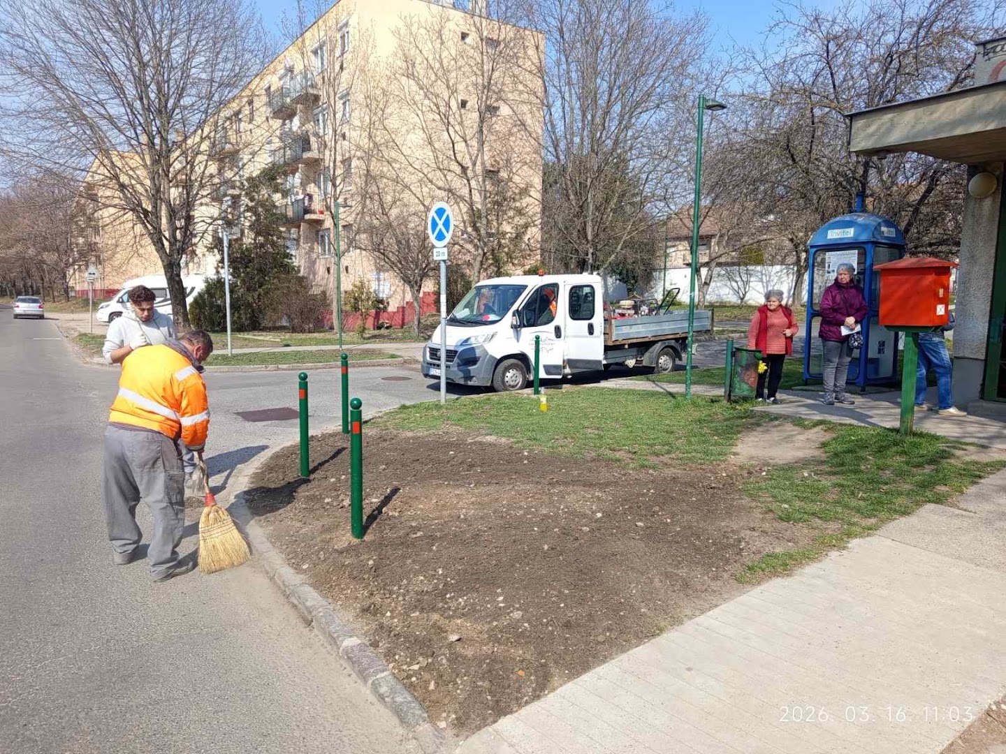 Virágágyak kapálása: Géza király tér, Kossuth Lajos tér, Zeneiskola virágágy, Március 15. tér, “Staféta” virágágy, Posta park, LIDL virágágy, Újhegyi úti körforgalom, KRESZ park, Vörösmarty tér, Deákvári CBA, mélygarázs térfelszin