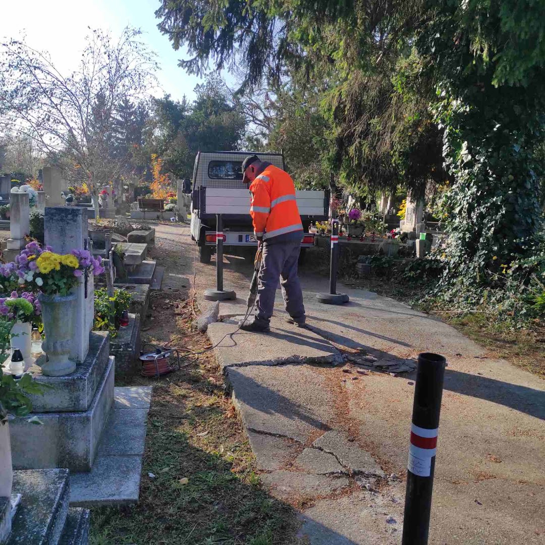 Útburkolat helyreállítása: Köztemető (alsóvárosi) (belső közlekedő út felbontása, visszabetonozása)