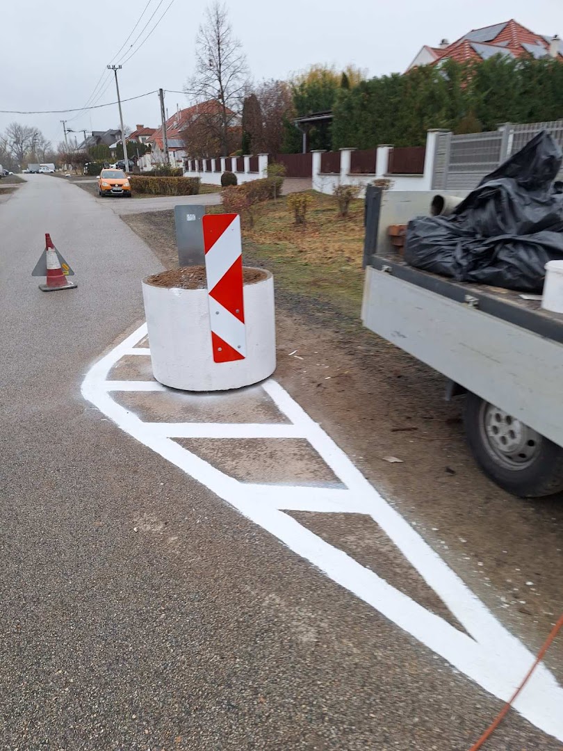 Forgalomcsillapítás kiépítése: Horgásztói utca (KRESZ oszlopok telepítése, aknagyűrű kihelyezése)