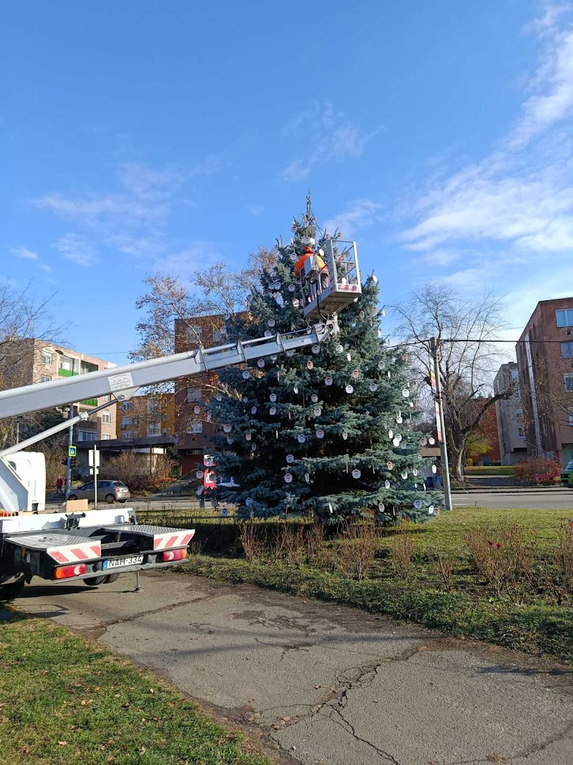 ADVENT-2025: tuják beszerzése és kihelyezése (Betlehem, Polgármesteri hivatal), függesztékek készítése, fenyők díszítése (Földváry Károly tér, mélygarázs térfelszín, Kisvác körforgalom)