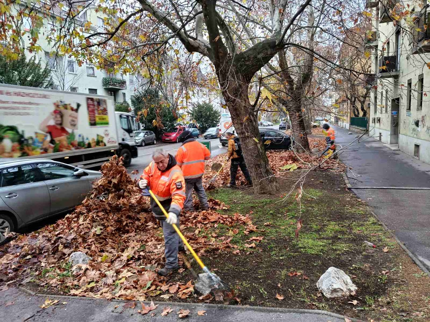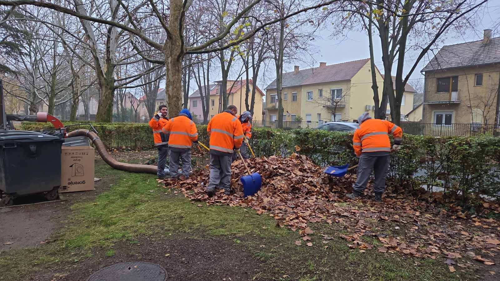 Lombtakarítás, lombgyűjtés: Földváry Károly tér teljes területe, Dózsa György út, Báthori Miklós utca, Kossuth Lajos utca, Váci strand környezete és park, ,Szent István tér, Berkes András utca, Zöldfa utca, Budapesti főút, Újhegyi út,  Naszály út, Erzsébet park , Piarista utca, Szentháromság tér, Rigó utca, Kossuth Lajos tér, Petróczy László utca, Fürj utca és udvarok, Diadal téri gesztenye sor, dr. Csányi Lászkó körút, Géza király tér, Diadal tér, Deákvári főút, Gombási út, Gasparik Kázmér utca, Petőfi Sándor utca, 2. számú főút vonala, Deákvár városrész területe, Radnóti Mikós út