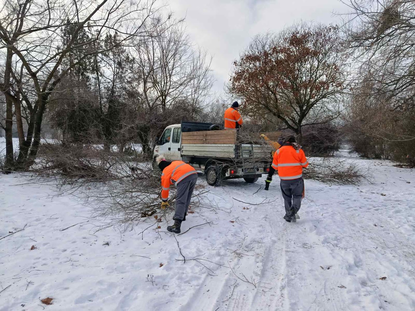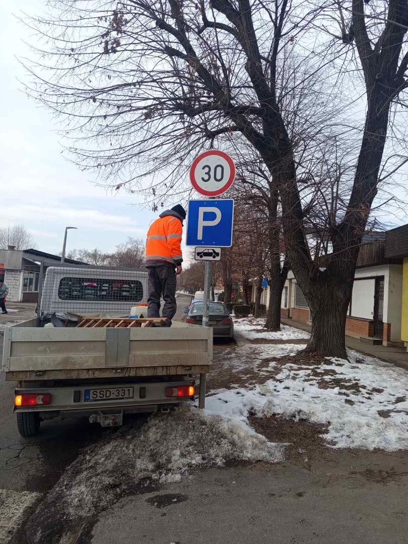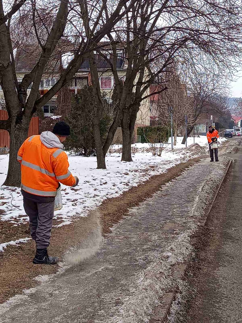 Téli síkosságmentesítés gépi és kézi erővel saját eszközökkel és alvállalkozó bevonásával a város frekventált közlekedési helyszínein, útvonalain