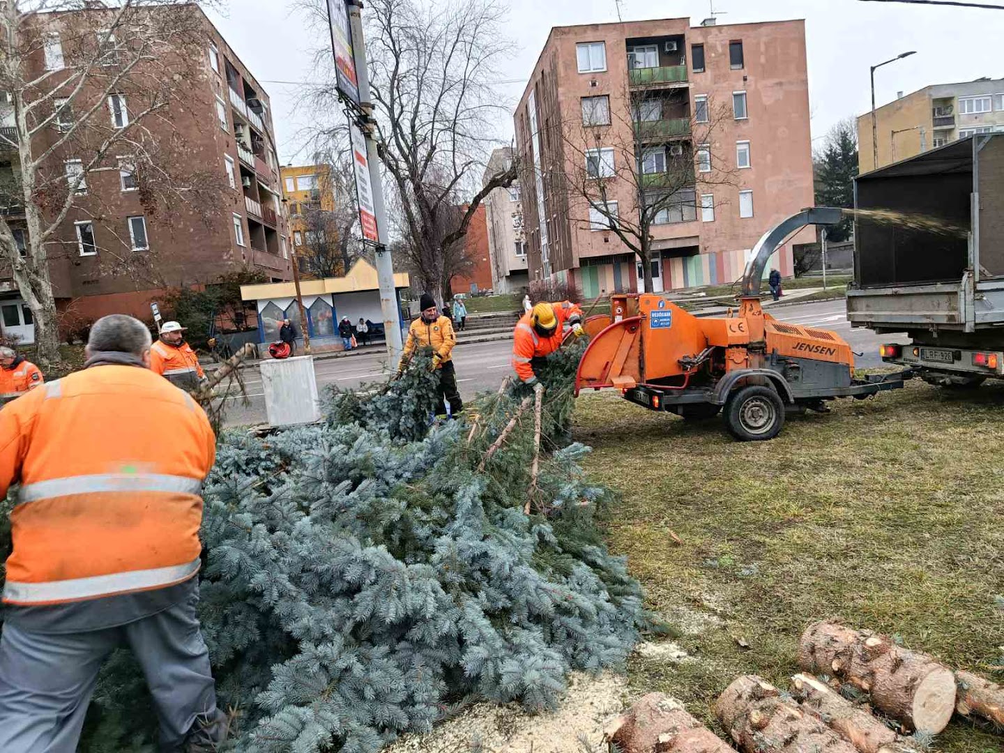 Adventi díszítések lebontása: Március 15 tér, mélygarázs térfelszín, Földváry Károly tér, Kisváci körforgalom