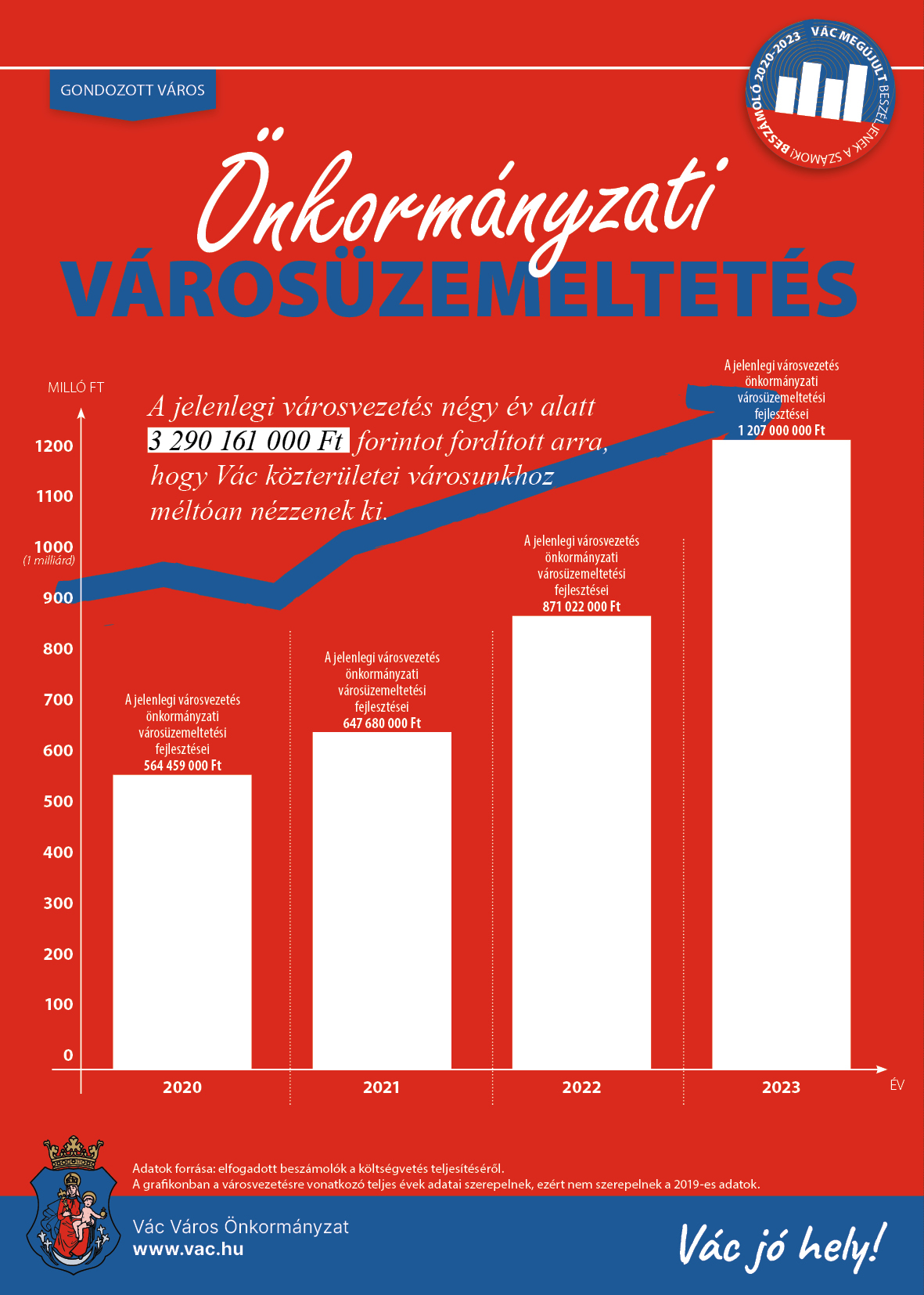 Elhanyagolt parkok, veszélyességük miatt bezáratott játszóterek, gondozatlan növényzet, használhatatlan utcabútorok jellemezték a 2010-es évek végén a váci közterületeket. Saját kézbe került a városüzemeltetés, komoly források bevonásával saját eszközök beszerzése történt meg a munkák elvégzéséhez. Tavaly már több, mint 1 milliárdot, a négy teljes év alatt közel 6 milliárdot költött az önkormányzat környezetünkre.