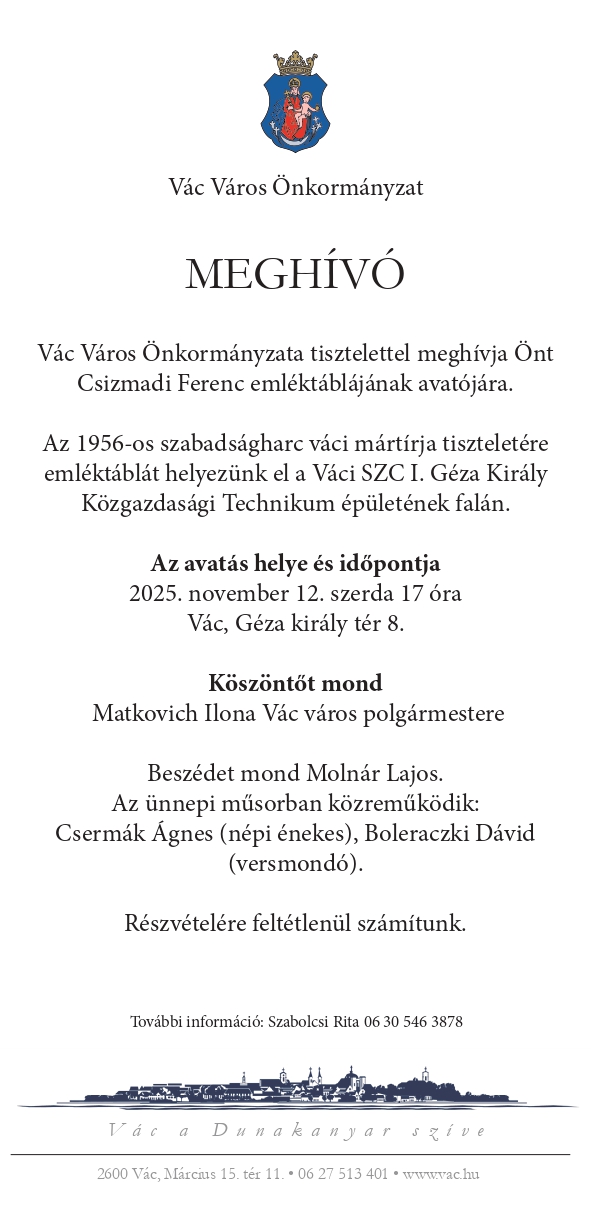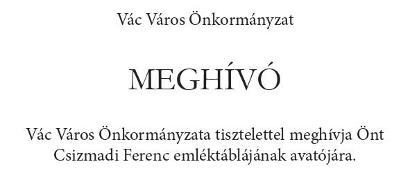 Címkék: Csizmadi Ferenc emléktábla avatómeghívó
