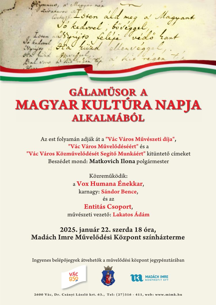 Ehhez kapcsolódva adják át országszerte a magyar kultúrával, továbbá – 1993 óta – az oktatással, a pedagógiai munkával kapcsolatos szakmai elismeréseket is. A váci Madách Imre Művelődési Központban is ekkor adnak át több városi díjat egy ünnepélyes gálaműsor keretében.