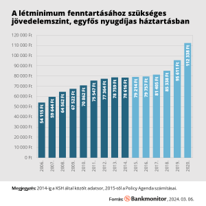 A Bankmonitor ezt alapul véve számolta ki, hogy 2023-ban már 160 ezer forint volt az egyfős nyugdíjas háztartások létminimum-szintje: