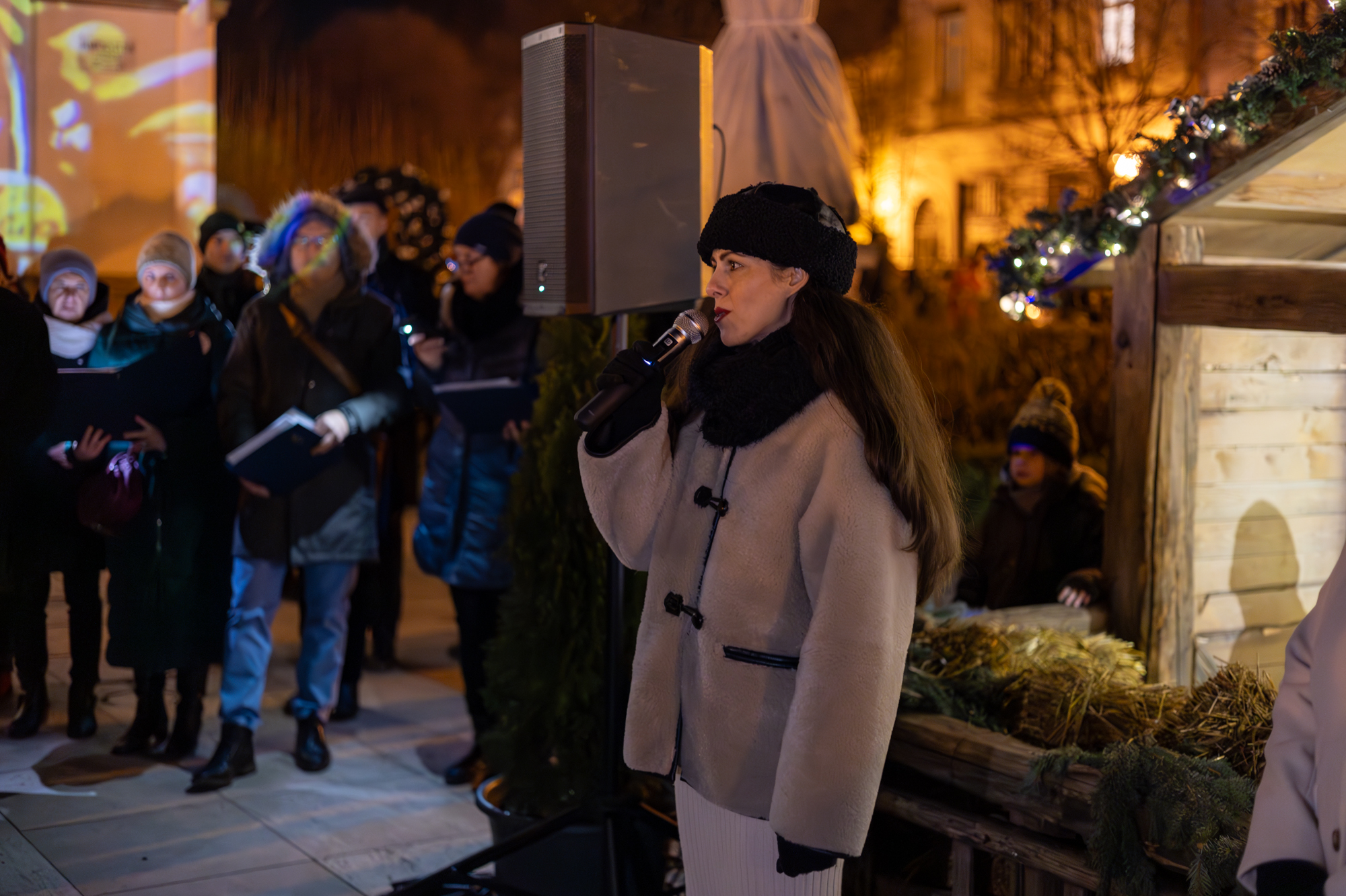 Matkovich Ilona, Vác polgármestere és Marton Zsolt váci püspök közösen gyújtotta meg a negyedik gyertyát a 2024-es advent utolsó vasárnapján, Vác főterén.