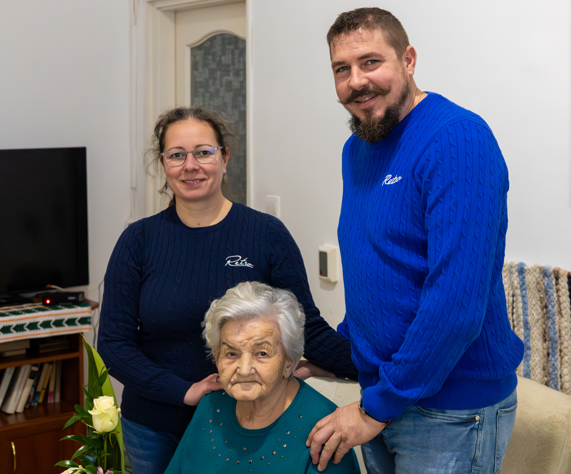 Erzsi néni maga is Erzsébet napon, 1935. november 19-én született Erdőkürtön. Édesapja földműves, édesanyja háztartásbeli volt, legidősebb gyermekként három kisebb testvére született. Iskolába szülővárosában, Erdőkürtön járt. Fiatalon elkezdte munkás éveit az Ikarus gyárban, itt ismerte meg későbbi férjét, akitől egy lánya és egy fia született. Erzsi néni sajnos Vácon élő fiát tavaly elveszítette, lánya viszont bár Acsán él, rendszeresen látogatja édesanyját.