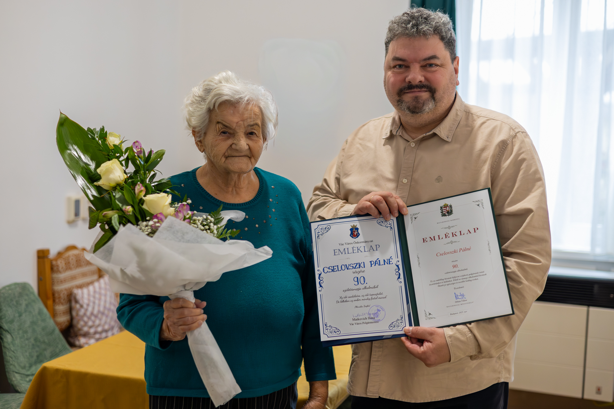 Cselovszki Pálné Pankó Erzsébetet köszöntötte 90. születésnapján az önkormányzat nevében Inotay Gergely alpolgármester. Erzsi néni a Burgundia utcai idősotthonban fogadta vendégeit, ahová idén februárban költözött.