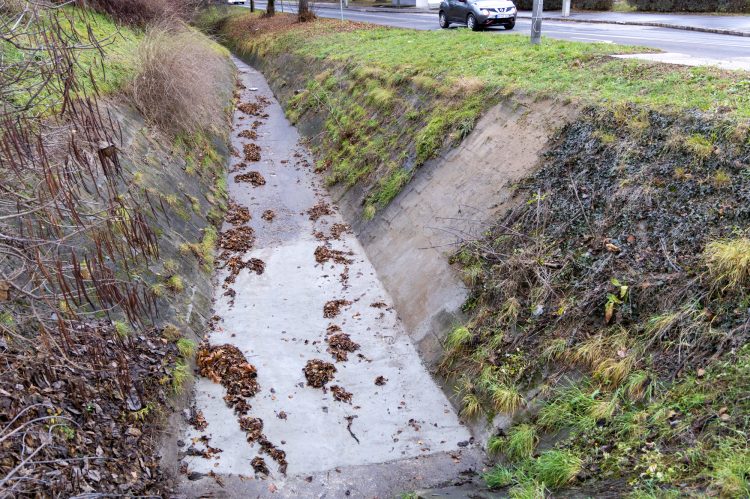 - A Naszály úti vízfogóhoz vezető árok az elmúlt években több helyen is megsérült, a víz kimosta talajt a betonaljzat alól, amely emiatt beszakadt.