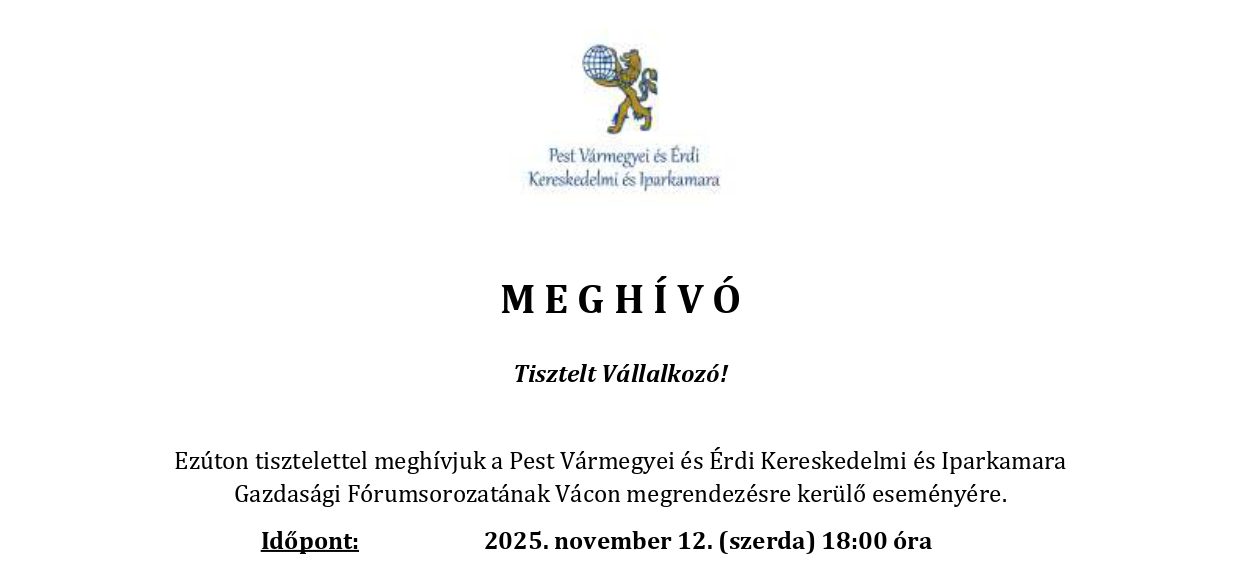 Meghívó a Pest Vármegyei és Érdi Kereskedelmi és Iparkamara Gazdasági Fórumsorozatának váci eseményére