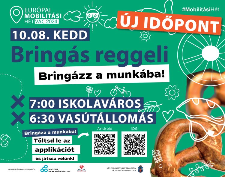 Vác Város Önkormányzat támogatásával, a Magyar Kerékpárosklub Dunakanyar szervezete és a Jószomszéd Hálózat közös szervezésében a város két pontján önkéntesek fogják osztani a reggelit a biciklivel közlekedőknek. Ezzel Vác is csatlakozik a Magyar Kerékpárosklub országos akciójához.