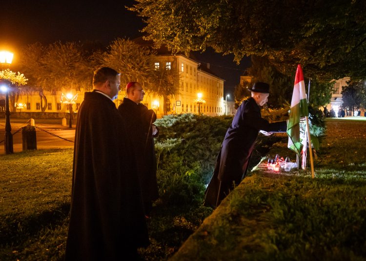 Október 23-án megemlékezés zajlott Dr. Pétery József megyéspüspök emléktáblájánál