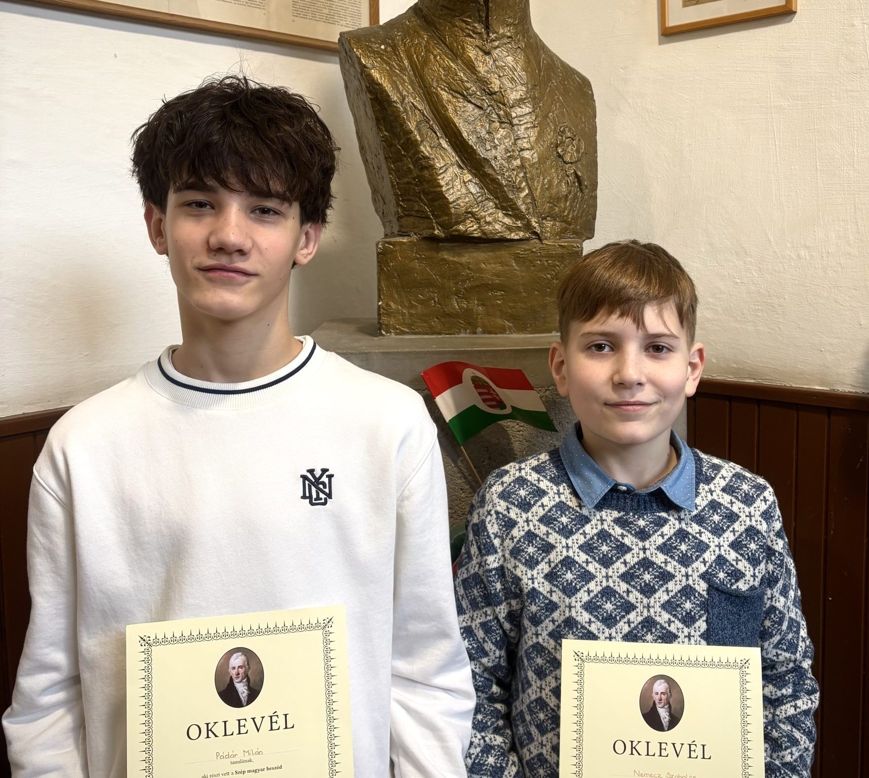 A Váci Petőfi Sándor Általános Iskolában is szívvel-lélekkel állnak a magyar nyelv ügye mellé. Éppen ezért hatalmas eredménynek, és kiemelkedő sikernek számít, hogy az intézmény 2 tanulója vitte el a pálmát, azaz szerezte meg az 1. és 2. helyezést is a „Szép Magyar Beszéd” vármegyei/területi versenyén a 7-8. osztályosok között, melyet 2026. február 20-án rendeztek meg az Apor Vilmos Katolikus Főiskola épületében. Két kiváló fiatalember Pádár Milán (1. helyezett) és Nemecz Szabolcs (2. helyezett) 7. osztályos tanulók (felkészítő tanáruk: Szabó Mónika) bebizonyították a versenyen, hogy nemcsak iskolai környezetben, a tanórákon teljesítenek kiválóan, hanem egy ilyen különleges versenyen is, ahol az értő szövegmondás, az intelligens szövegértelmezés, a magabiztos kiállás és a jó orgánum egyaránt fontos.