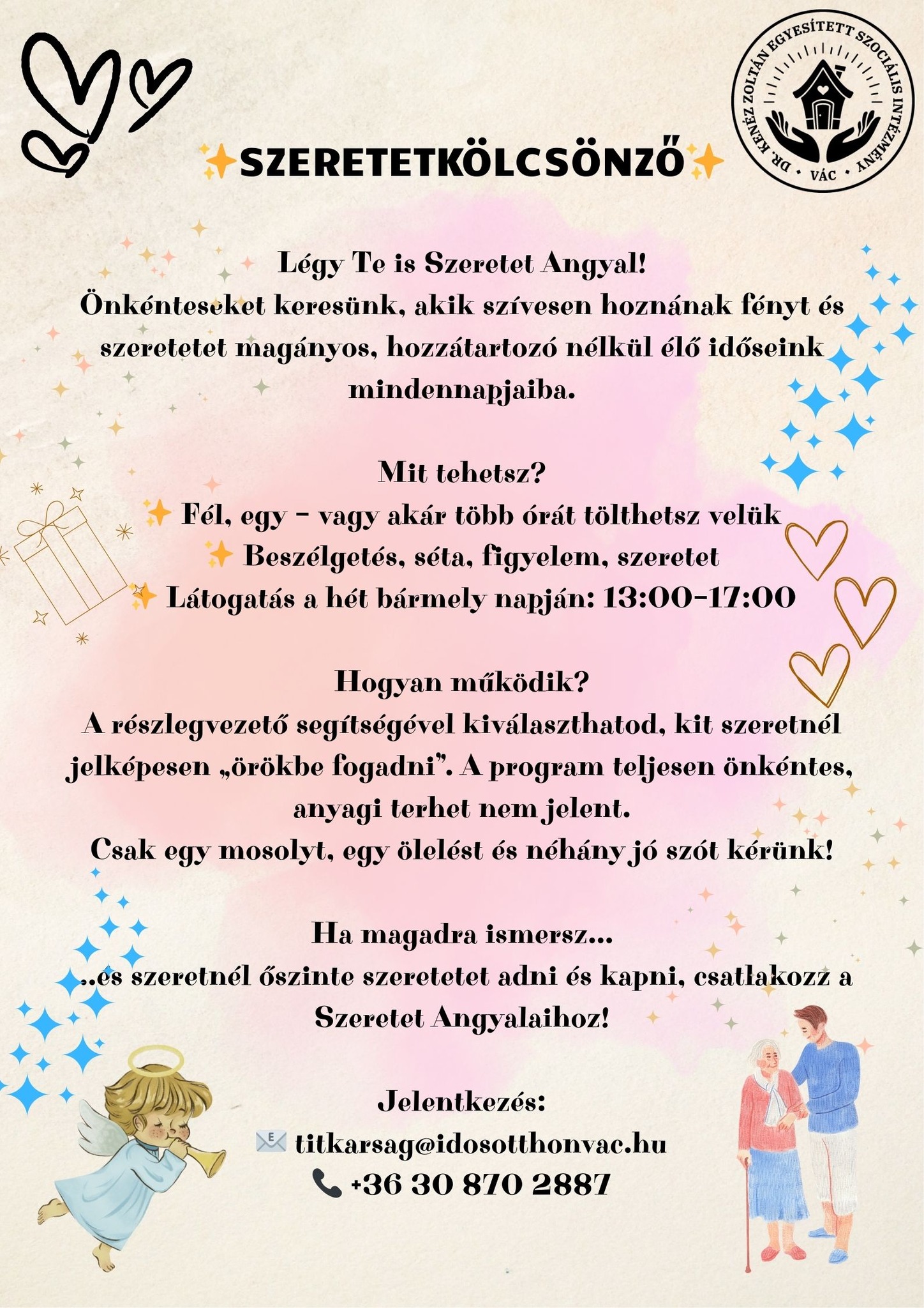 Jelentkezés és további információ: titkarsag@idosotthonvac.hu; +36 30 870 2887