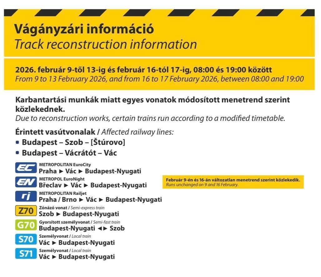Vágányzári információ
