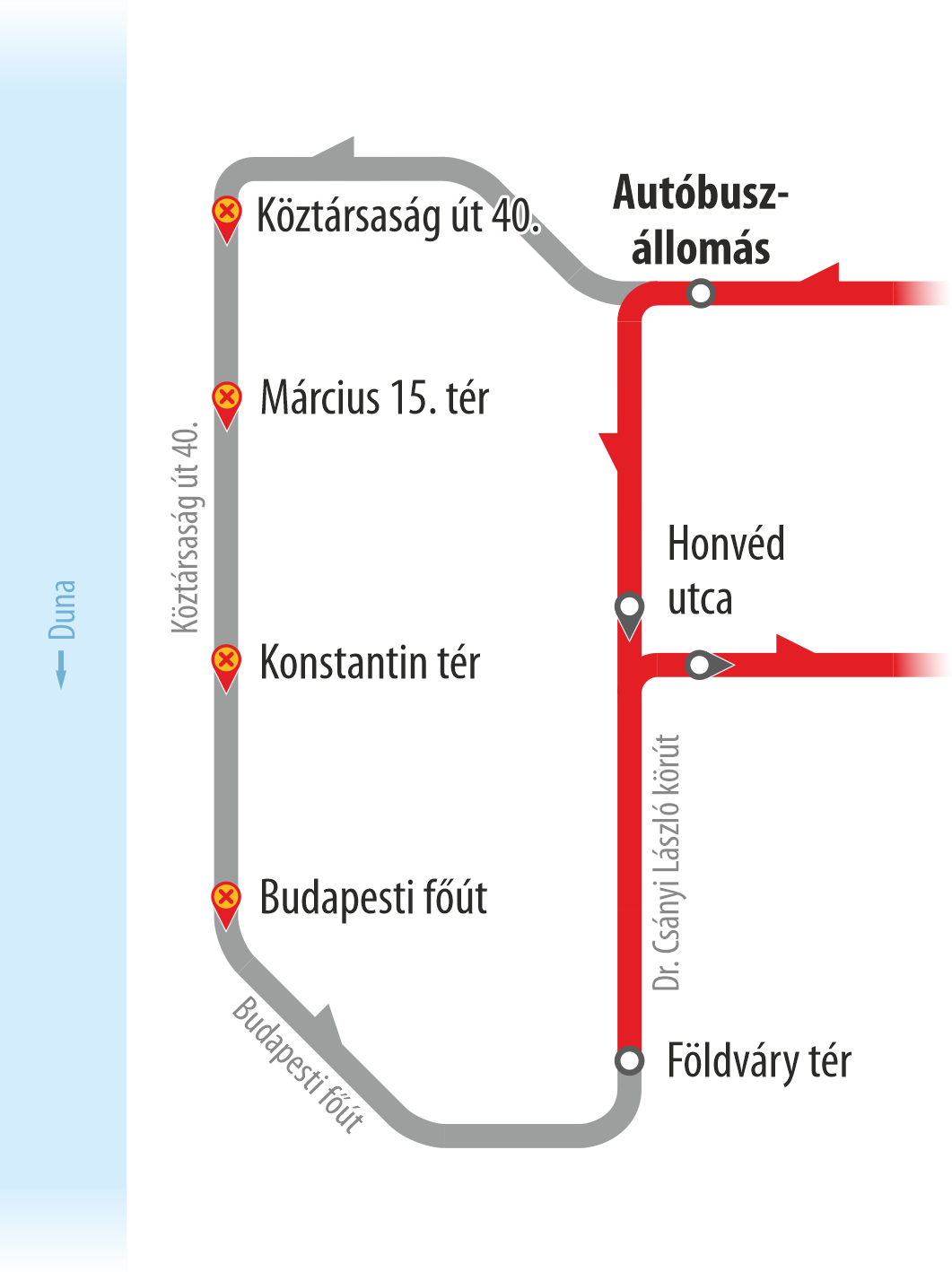 • Dr. Brusznyai Árpád emléktábla és Dr. Pétery József emléktábla környéke (Budapesti főút és Konstantin tér részbeni lezárása a Múzeum utca és a Migazzi Kristóf tér illetve a Konstantin tér Budapest főúti szakaszának zárása a Konstantin tér – Petróczy L. utca – Köztársaság út felől).